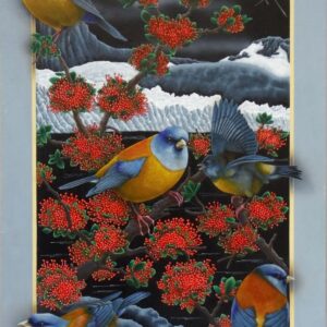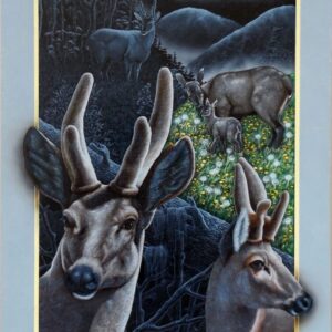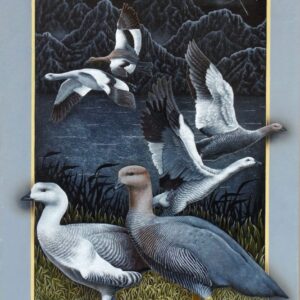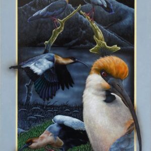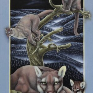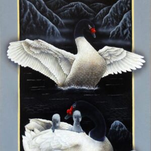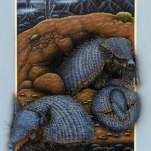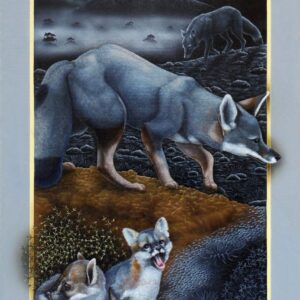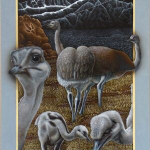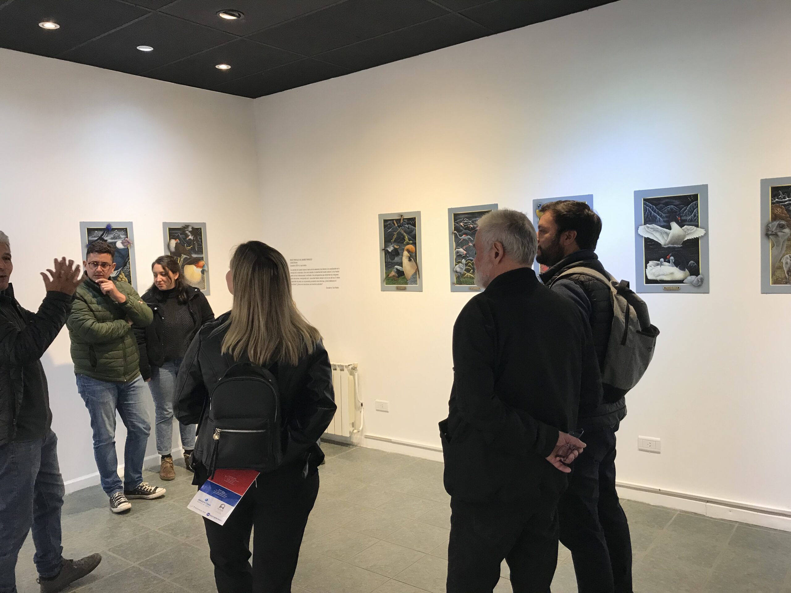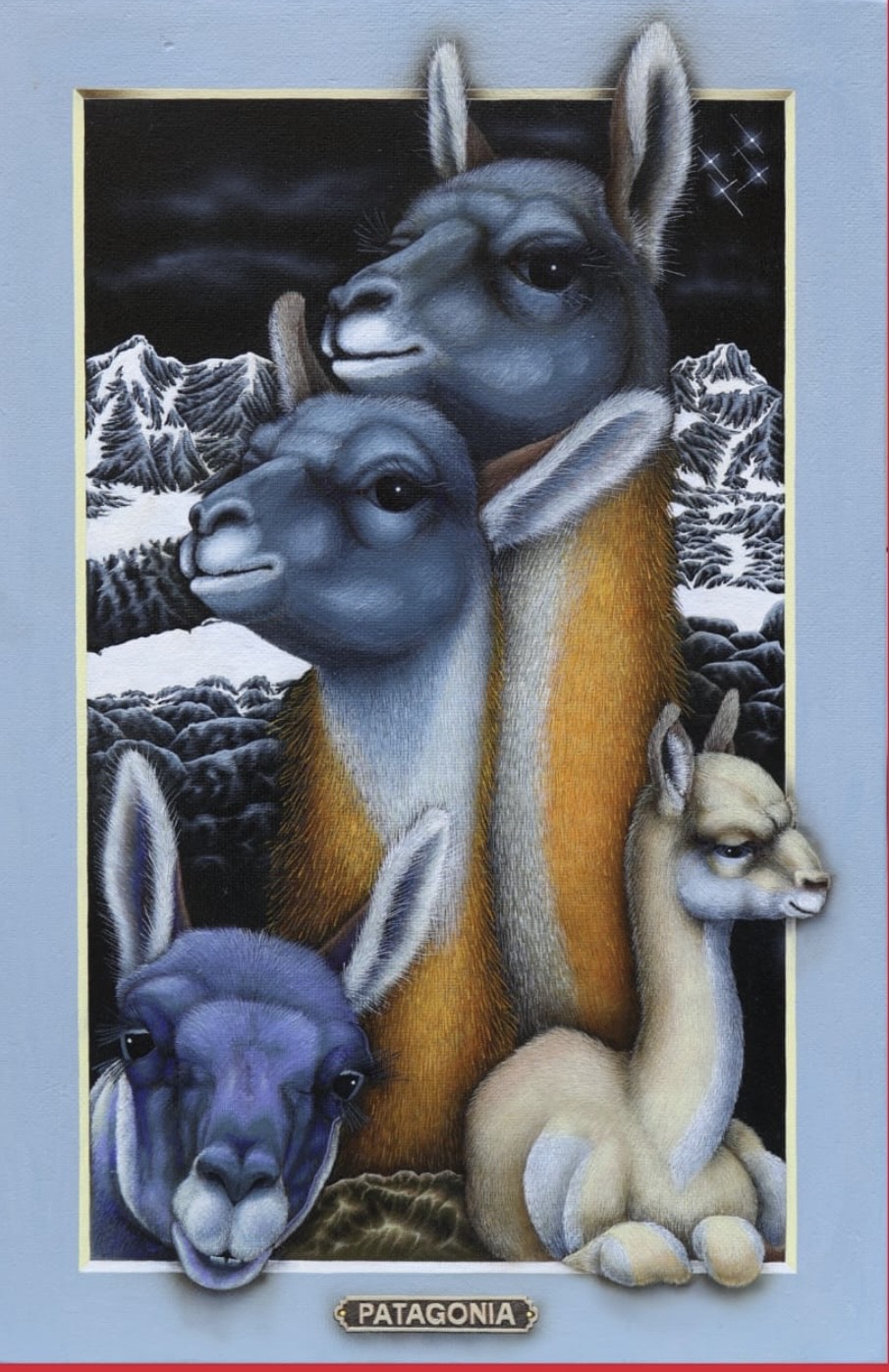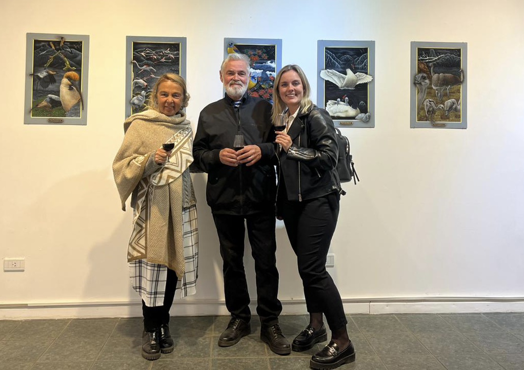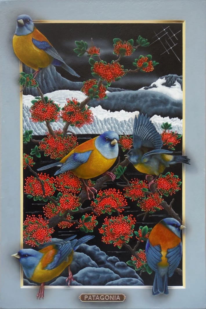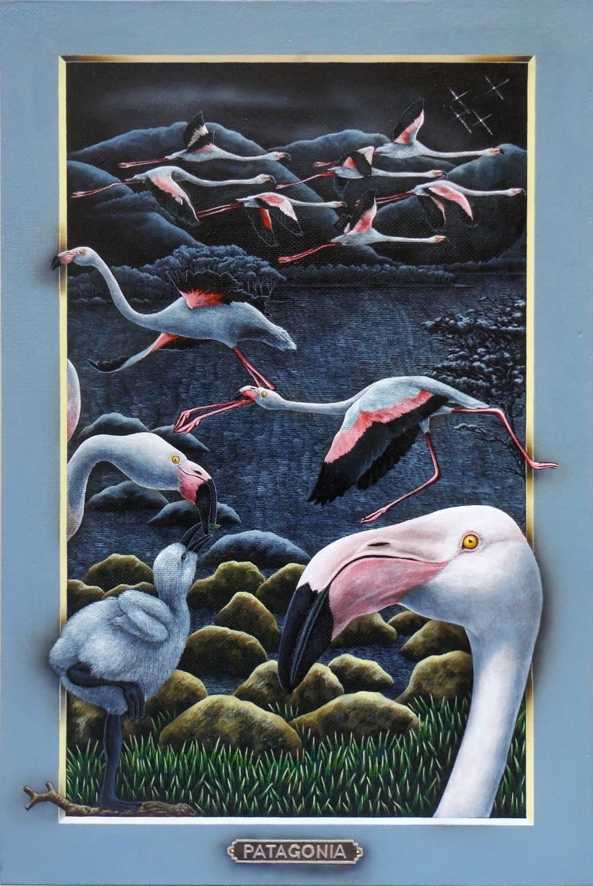 Los portales de Leonid tienen la fuerza de la conexión al yo interior y la canalización de la energía de la naturaleza. Una clara alusión a la plenitud del mundo natural. La luz frontal pone un foco tridimensional, exaltando a los protagonistas que desbordan los márgenes para abrazarnos, emergiendo de la oscuridad donde siempre está la cruz del sur. El oficio impecable de pintor en su pincelada preciosista nos interroga ¿Cómo habitamos el territorio? ¿Cómo nos vinculamos con nuestros animales?